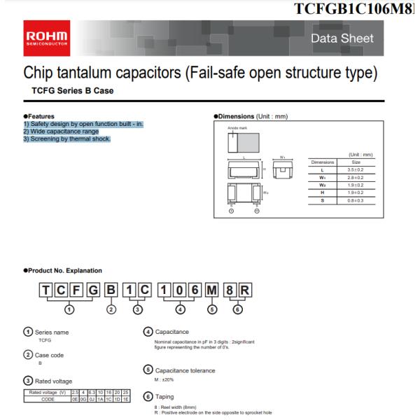 TCFGB0J227M8R 220 µF Molded Tantalum Capacitors 6.3 V 1411 (3528 Metric) Images |